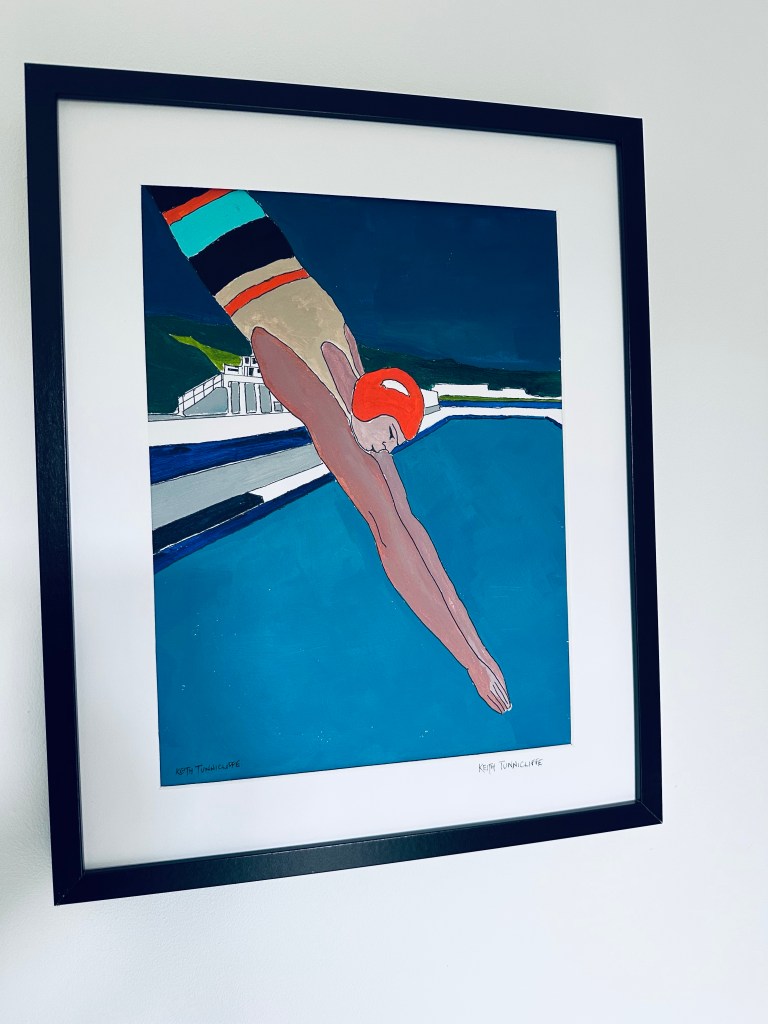 Open Water Swimmer – Original Watercolour Framed 40×50 – £125 plus £20 Pack/Del