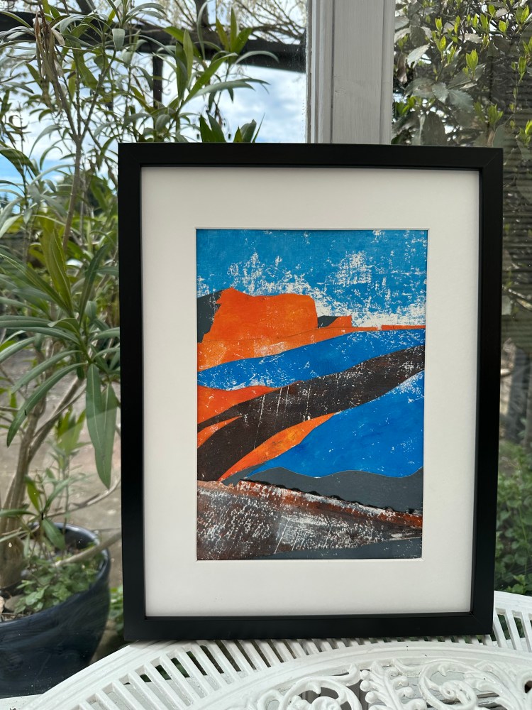 LOVE the Coast – Original Linocut Collage – Framed 300 x 400 – £95 plus £20 Pack/Del