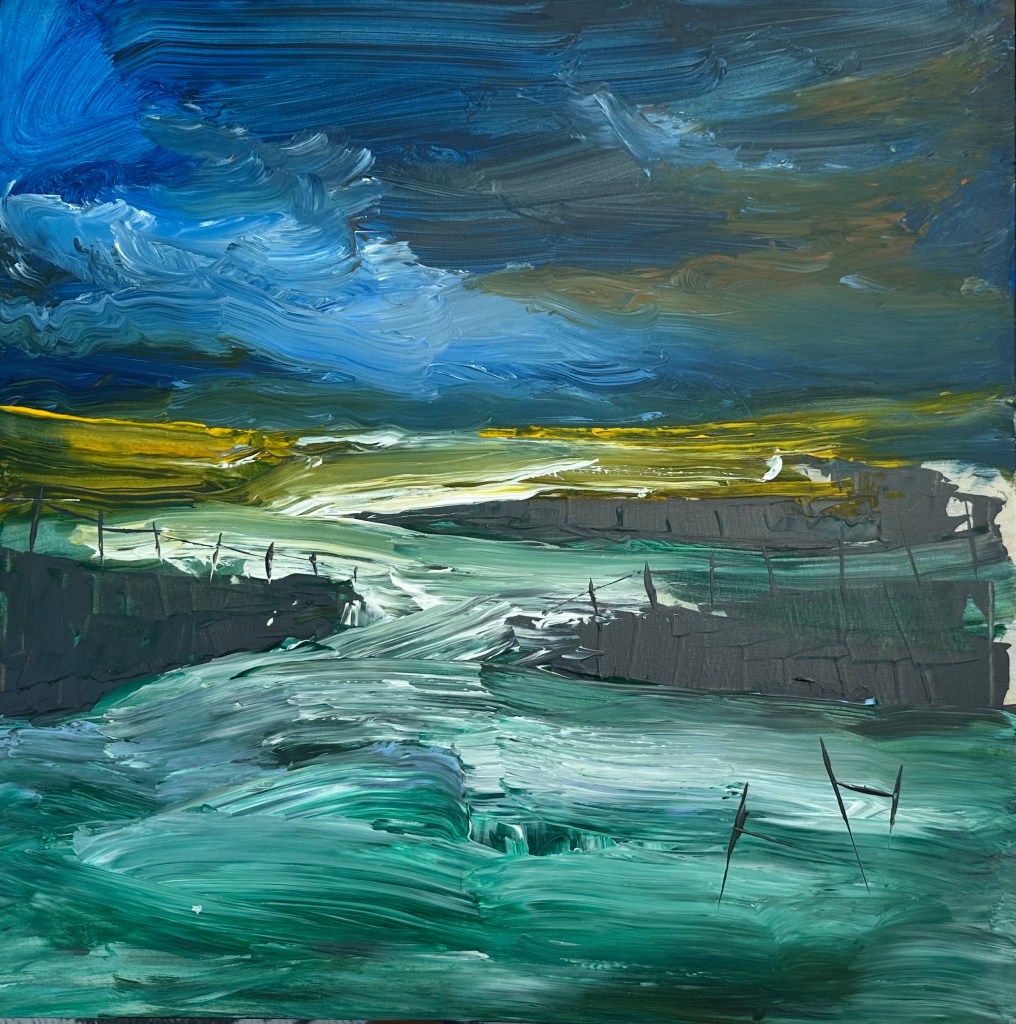 STORM DRIVEN OCEAN : Original Acrylic Artwork on Canvas : Unframed 550×550 : £125 plus £20 UK Pack/Del