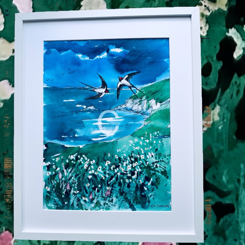 SWALLOWS on Berry Head : Original Artwork : Framed 40×50 : £125 plus £20 UK Pack/Del