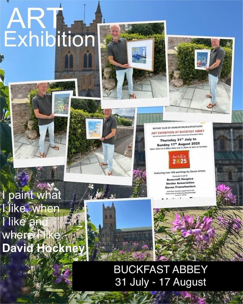 Proud to be exhibiting at BUCKFAST ABBEY ART EXHIBITION… Glorious venue… Beautiful Abbey, Wonderful Gardens, Great Food … oh some Great Art too! Free Entry to the Abbey, Gardens and Exhibition. Supporting local Charities!