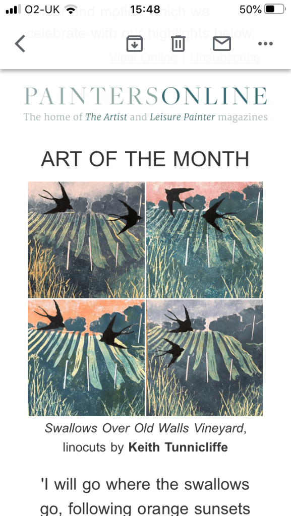 Absolutely overwhelmed to have my work selected as Art of the Month by Artist & Leisure Painter Magazine … inspired by OldWalls Vineyard!