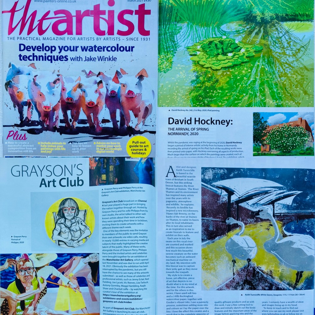 Lovely feature in the Artist Magazine depicting my White Swans linocut one of 4 celebrating not only the bird life on the Thames but also the beers of Thames Side Brewery.