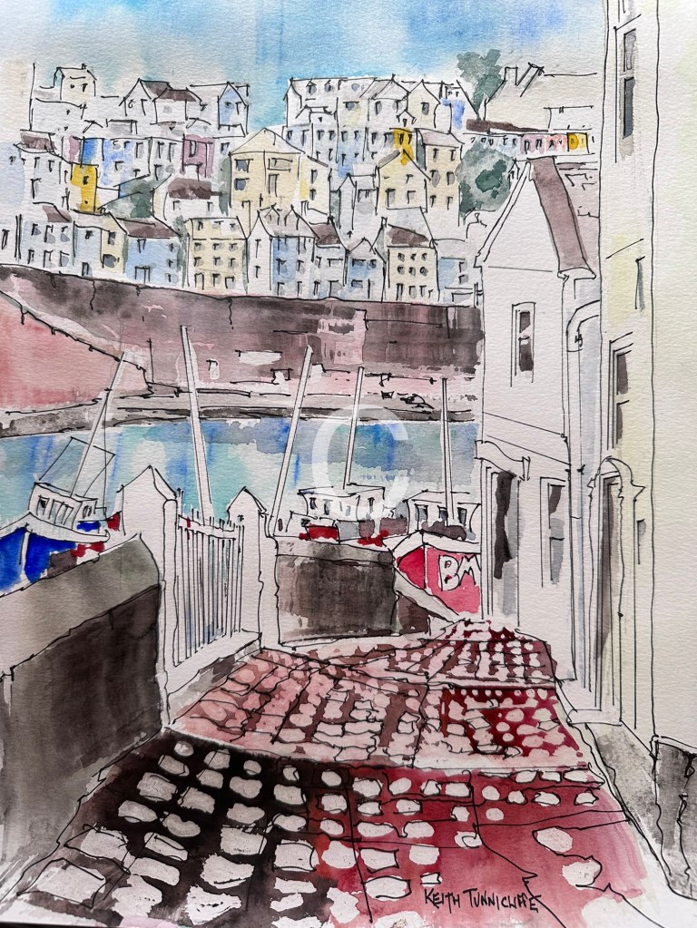 View from Overgang… Posted byKeith TunnicliffeNov 24, 2023Posted inUncategorized Loose watercolour capturing the view from Overgang in Brixham. VIEW from OVERGANG [Brixham] – Original Watercolour, Mounted and Framed at 400×500. £125 plus £15 Pack/Delivery Share this: Click to share on X (Opens in new window) X Like Loading... Published by Keith Tunnicliffe Linocut Artist View more posts