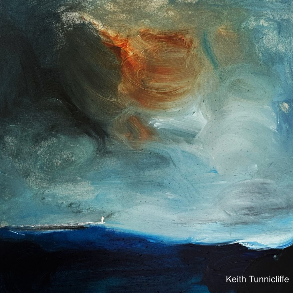 Towards the Breakwater #acrylic 575×575 … Stormy Sky, Dramatic Sea and the Breakwater marking the return home! #lovebrixham