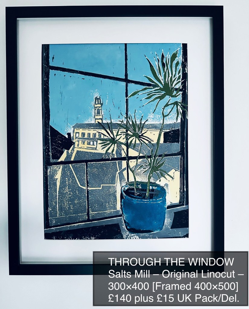As featured in The Artist Magazine [April 25] – Through the Window! My capture of just one of the amazing views from the Salts Mill. Through The Window is an Original Linocut – Framed 400×500 £140 plus £15 UK Pack/Del – https://larkstudios.co.uk/contact/ if interested!
