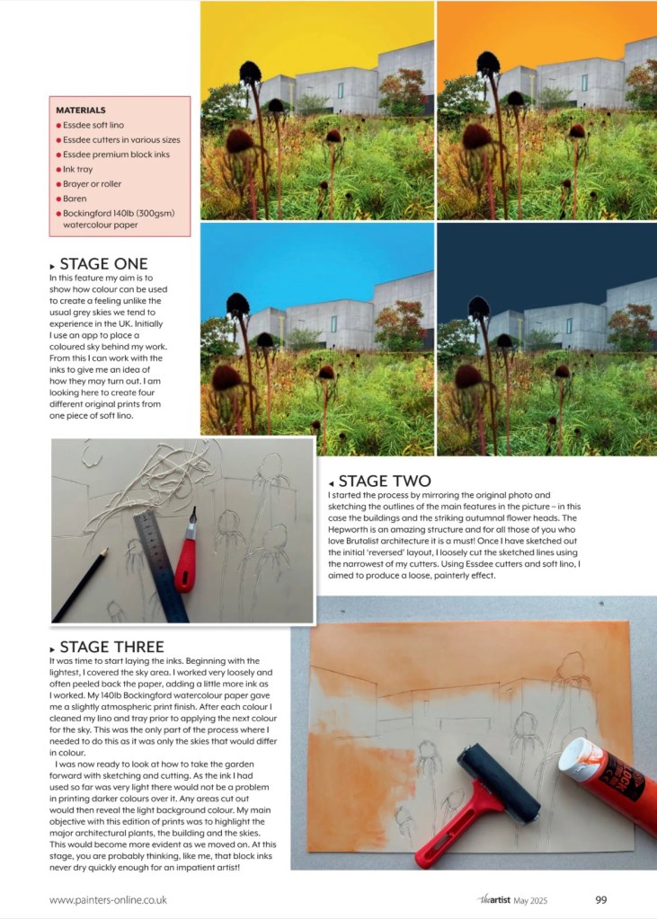 Super pleased with my Linocut feature in The Artist Magazine! Take a look at how I captured The Hepworth Wakefield in the latest issue! This is Part 2 of 4 tutorial articles I am creating for the publication, following SALTS MILL in last month’s issue. Enjoy!