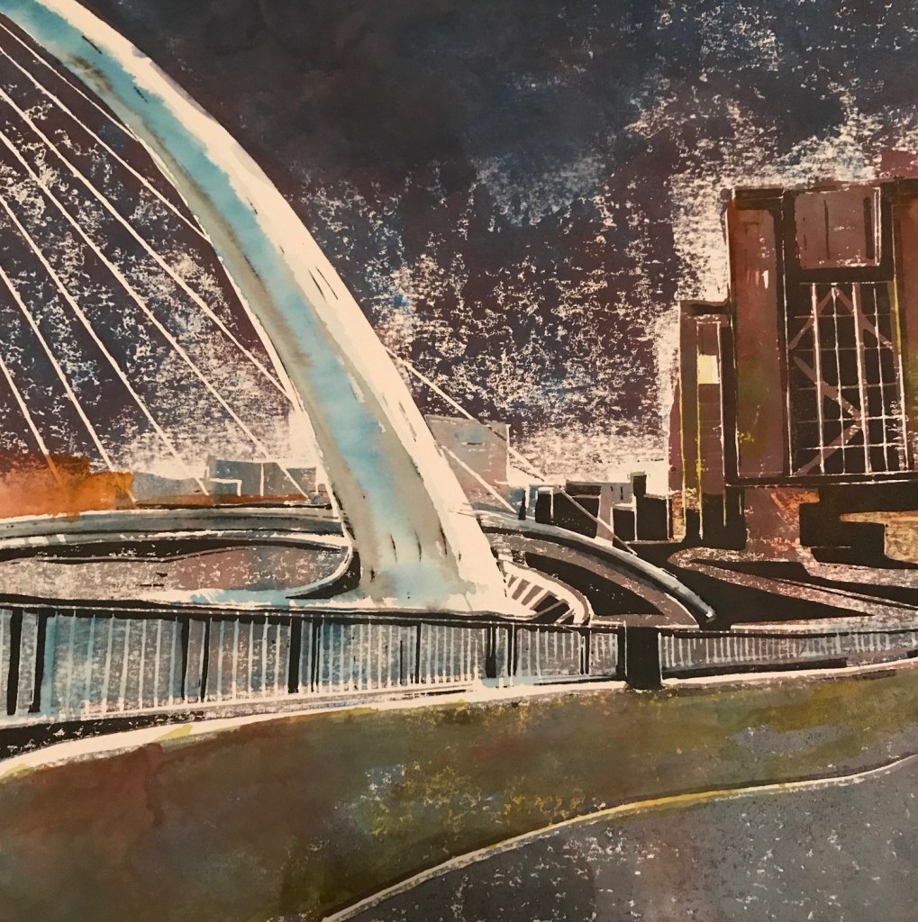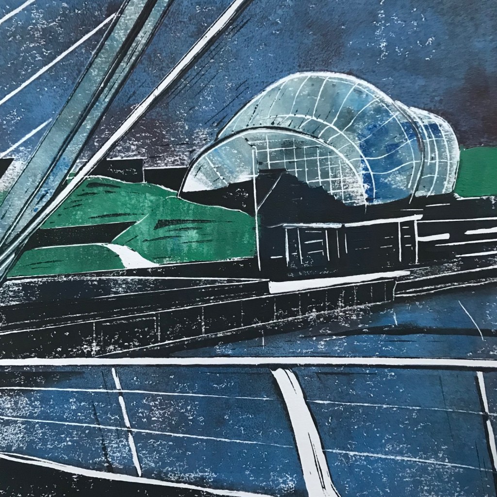 I loved chatting over breakfast with my fellow artists and I listened intently as they discussed their thoughts on the day. With 5 professional artists in the pods today I decided I would create a semi-abstract/contemporary artwork, fuelled by the dramatic shape opposite and the wonderful Baltic Contemporary Art building in the background.