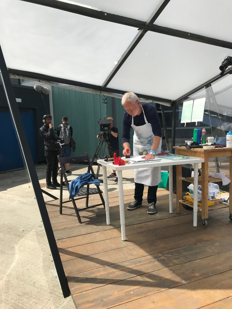 So many lovely comments as people pass by to view the work of the artists and great support from the Sky Arts team filming the day. I have to say I was really looking forward to meeting Kathleen Soriano and Tai Shan Schierenberg as I am a great fan of the show and admire their commitment and encouragement they give the artists. True to form they were extremely complimentary about my work and really supportive of me personally with the challenge I, and my fellow artists, have in completing our work in just 4 hours. I was a little sad not to meet the wonderful Kate Bryan but she was just a little involved elsewhere [#bump].