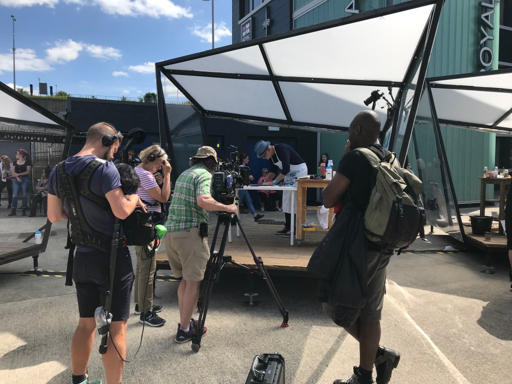 We start by filming our ‘walk on’ as we are led to our pods to unpack our materials. The day actually passes as pretty much a blur as I have my head down carving the artwork and not paying much attention to what is going on around me. At one point I looked up and saw two cameras in front of me and one behind plus the time-lapse in the pod itself. It’s a good job I don’t scare easily.