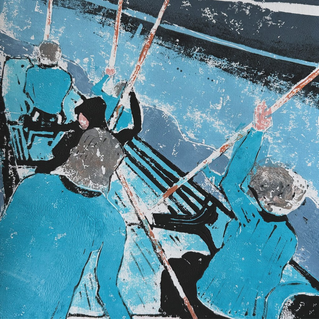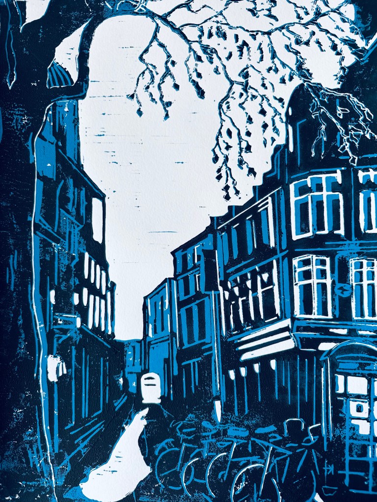 CITY LIFE – Original Linocut – Framed 40×50 – £140 plus £20 UK Pack/Del