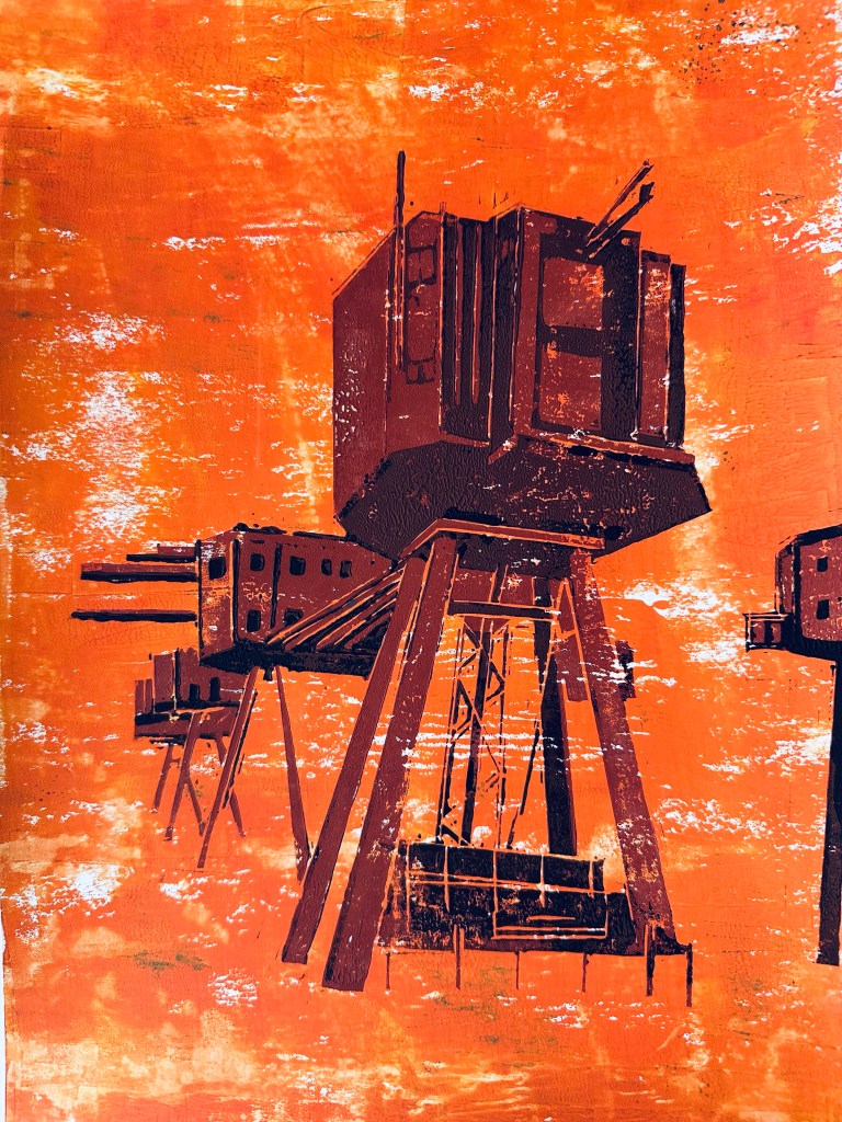 SEA FORTS – Original Linocut – Framed 40×50 – £140 plus £20 UK Pack/Del