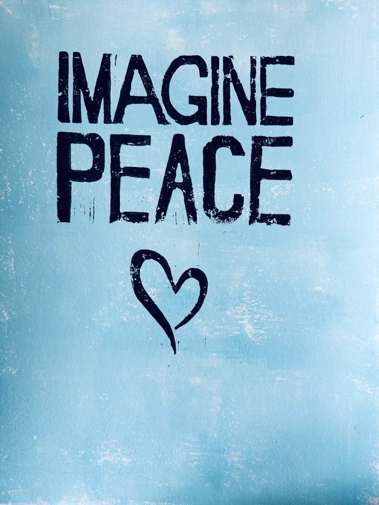 IMAGINE [John & Yoko] – Original Linocut – Framed 40×50 – £140 plus £20 UK Pack/Del