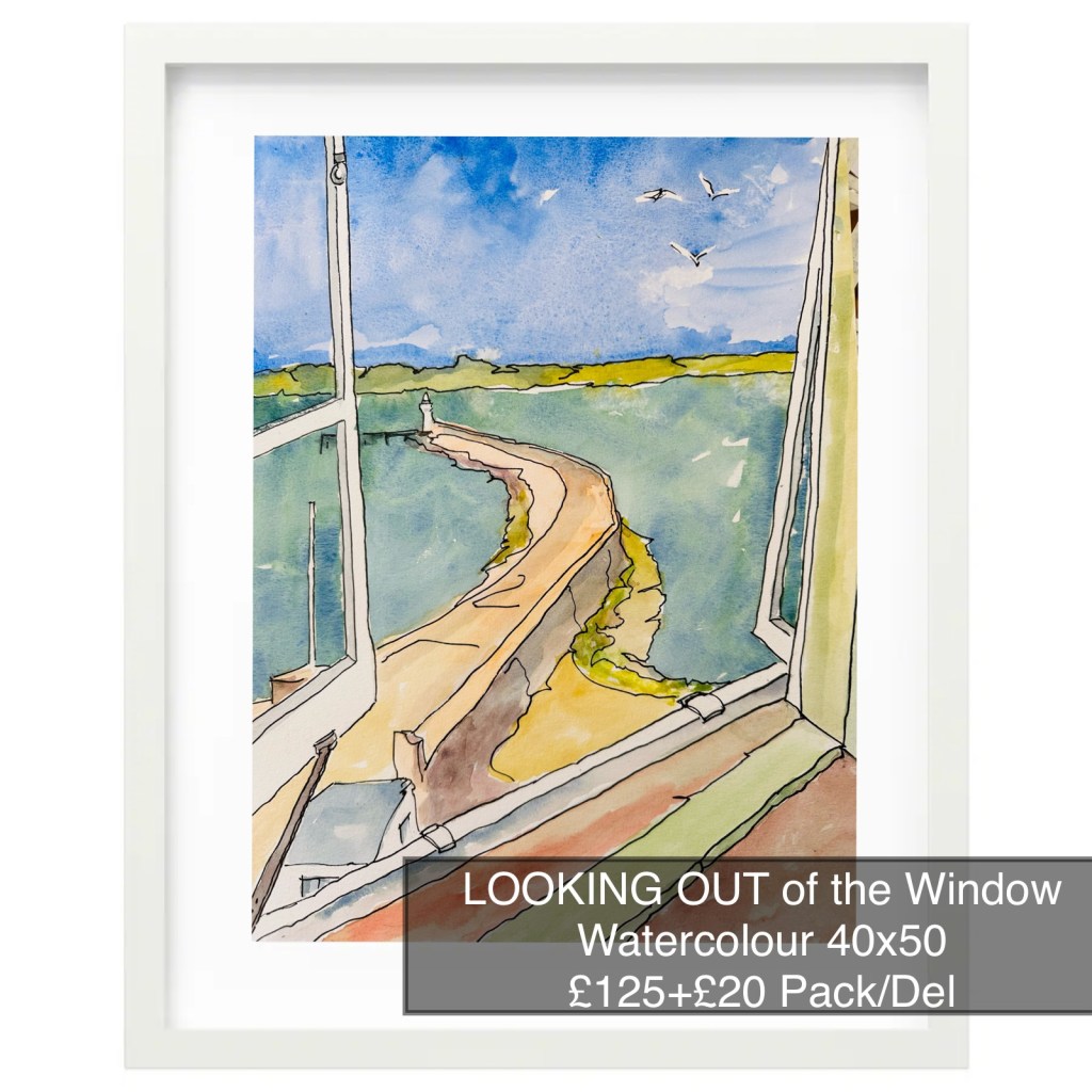 LOOKING OUT of the Window – Watercolour – Framed 40×50 – £125+£20 UK Pack/Del
