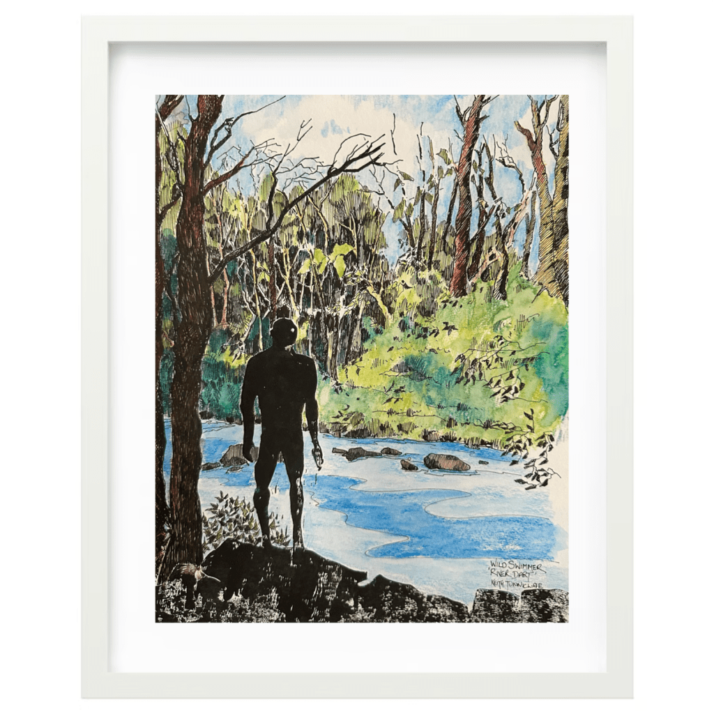 WILD SWIMMER – River Dart : Original Artwork : Framed 40×50 : £125 plus £20 UK Pack/Del